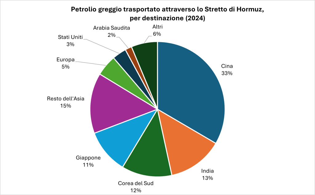 Il continente e il Paese più coinvolti dagli accadimenti nello Stretto di Hormuz sarebbero l’Asia e la Cina. Oltre l’80% del petrolio che vi transita è diretto verso l’Asia, con la Cina a fare da padrona.
